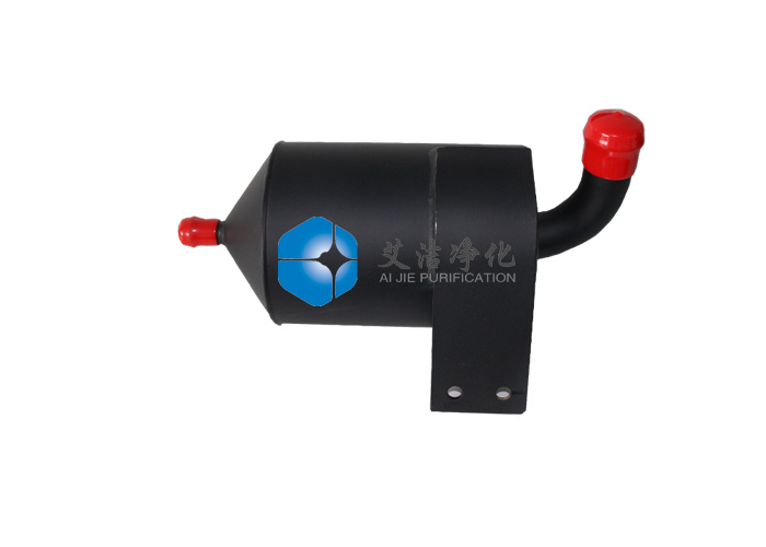 艾潔凈化生產(chǎn)的旋風(fēng)式油氣分離器是讓氣液混合氣經(jīng)過切向進氣道或是螺旋進氣道進入分離器內(nèi),使混合氣在分離器內(nèi)旋轉(zhuǎn)運動,以此產(chǎn)生離心力來實現(xiàn)油滴的分離,它的分離機理與主動離心式油氣分離器相同,只是不需外界提供動力。